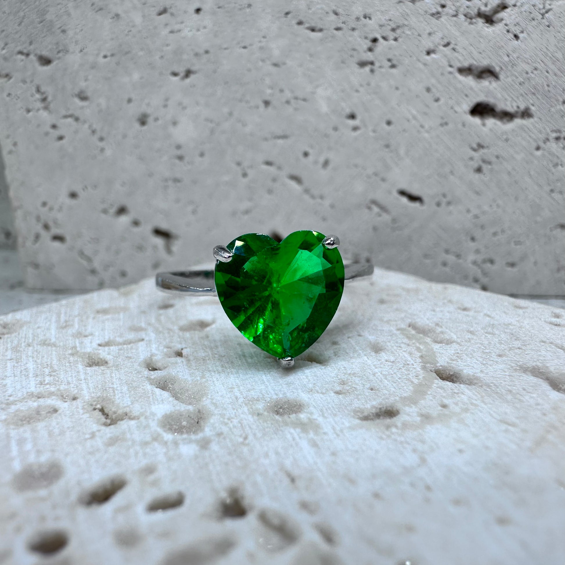 - ring holds a 9mm faceted heart shaped stone